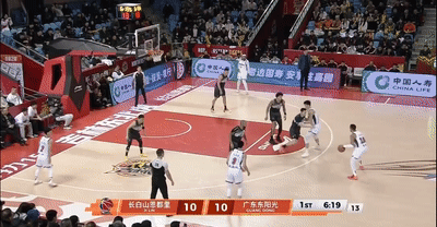 广东先发阵容不变,首节开局奎因突破先拔头筹,阿日制造少杰犯规2罚1中,胡明轩威尔逊互飚三分,徐杰转换扔进一记踩线三分,杜锋光速换上焦泊乔,奎因摩尔对飙三分,威尔逊连送2帽后上演补扣,6分13秒,徐杰再中三分,两回合后奎因三分再进,两队都不设防,广东半节三分7中5,吉林则在威尔逊连得8分带领下紧追比分。