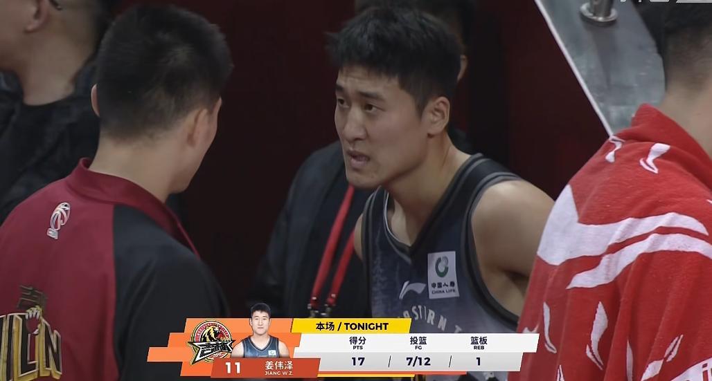 半场奎因拿到21分4板4助,徐杰12分,姜伟泽轰下17分,威尔逊15分5板。