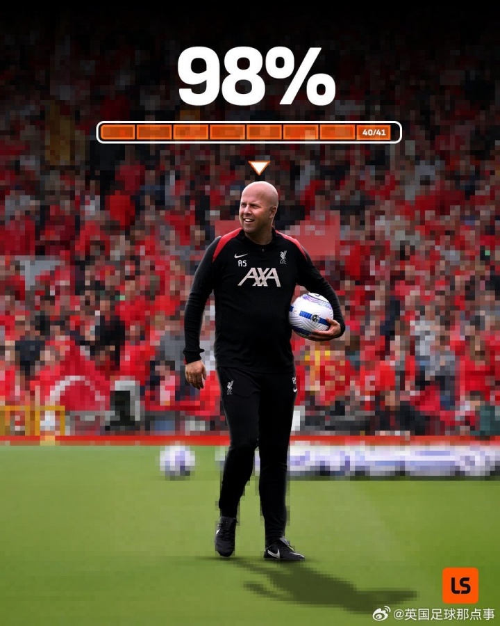 利物浦在斯洛特率领的41场比赛中,有40场成功破门(98%)⚽️🔴